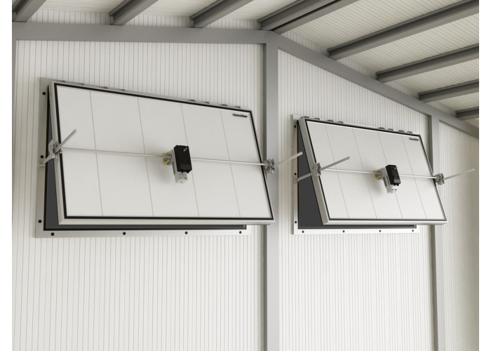 Изделие применяется для создания автоматизированной системы вентиляции больших помещений для хранения овощей. Продукт будет способствовать снижению затрат собственников за счет использования в холодное время года уличного воздуха для вентиляции. Алюминиевые рама и каркас изделия предназначены для работы в условиях агрессивных сред.